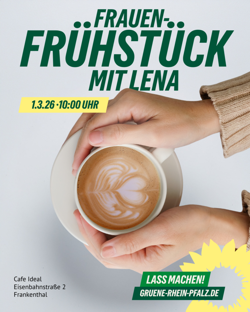 Am 1. März um 10 Uhr lädt unsere Direktkandidatin Lena Fröhlich zum Austausch ins Café Ideal (Eisenbahnstraße 2, Frankenthal). Lasst uns über Politik sprechen – bei Kaffee, Croissants und starken Ideen für unsere Region!