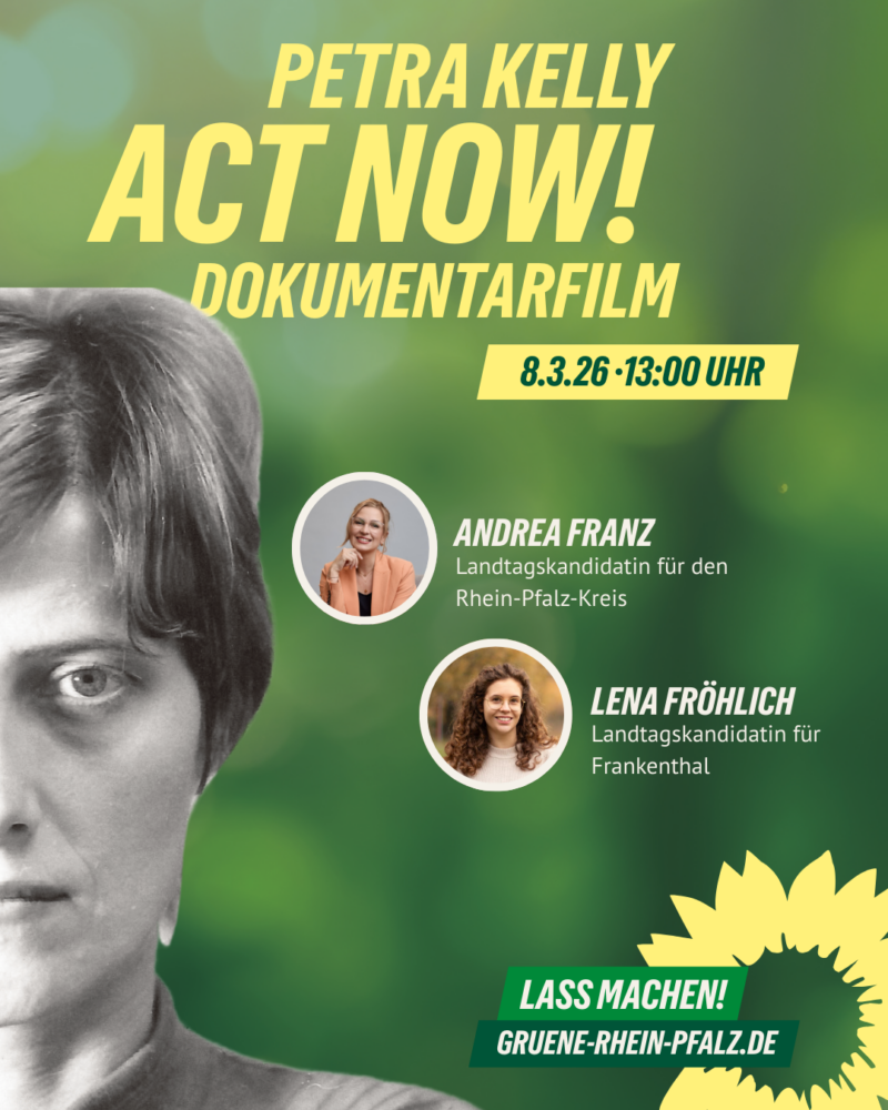 Am Weltfrauentag, dem 8. März, zeigen wir im LUX Kino Frankenthal den bewegenden Film über die Ikone der Friedens- und Umweltbewegung – Petra Kelly. Kommt vorbei, diskutiert mit und lasst uns gemeinsam für eine gerechtere Zukunft kämpfen!